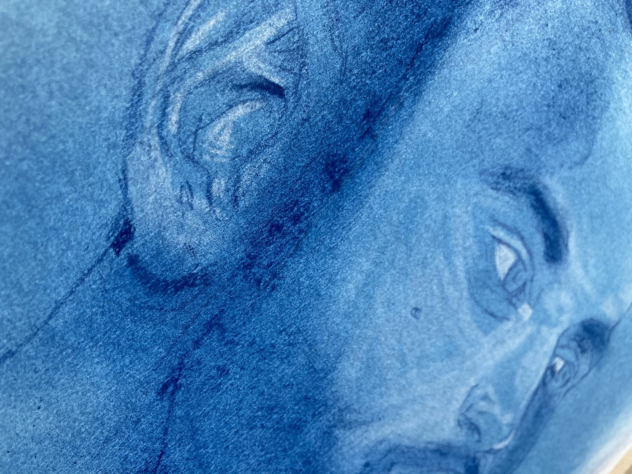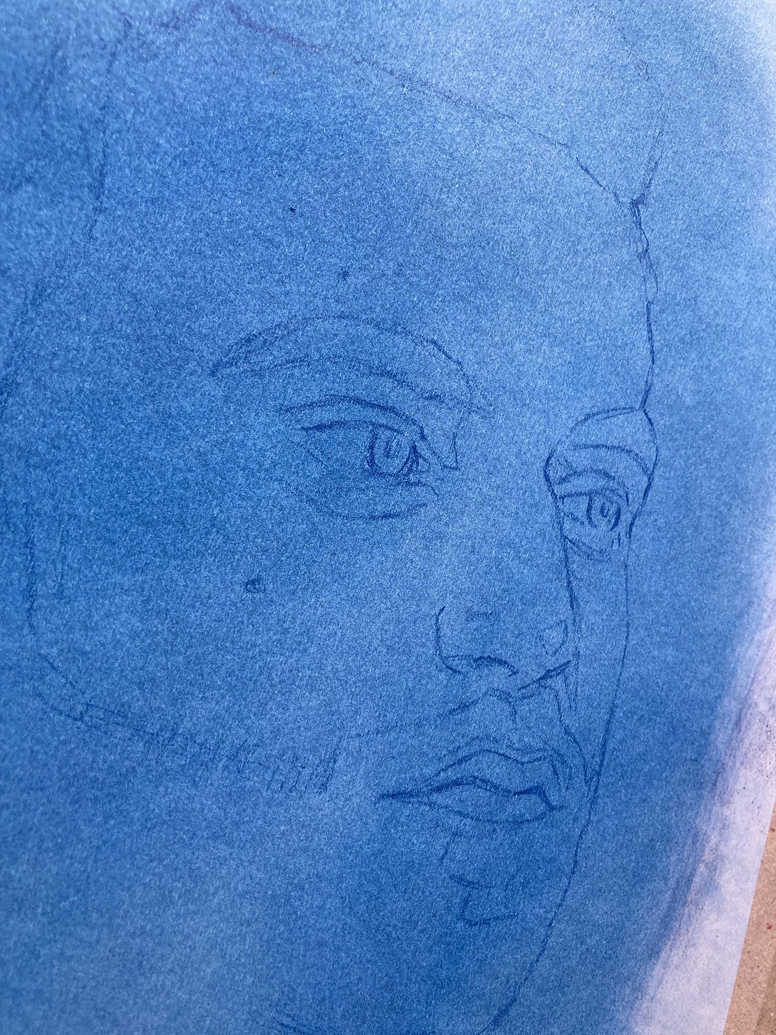 Created on Sunday 6th July, using Blue pastel and coloured pencil on Blue and Yellow stock.